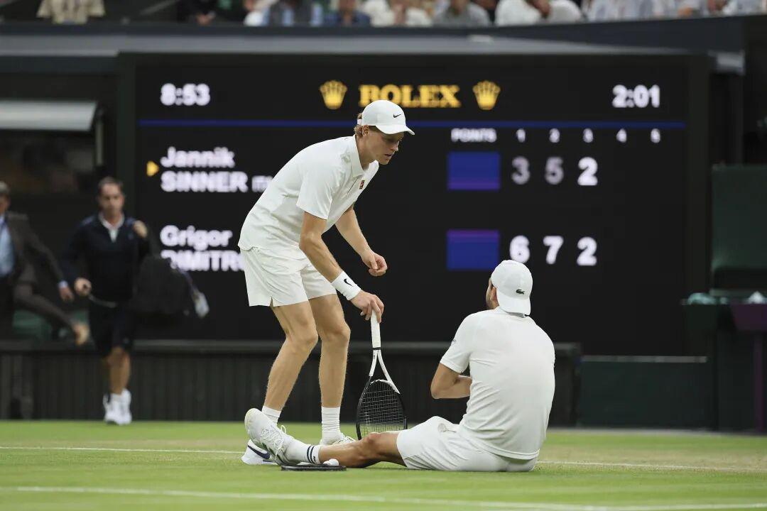 当时有记者提问,如果是费德勒的话会如何对付现在打球如机器人般稳定的辛纳。费德勒举了个例子,是2025年温网1/8决赛,迪米特洛夫对阵辛纳的比赛(当时保加利亚名将在拿下两盘的大好局面下因伤退出了比赛,但是前两盘迪米在各方面都牢牢压制住了辛纳)。