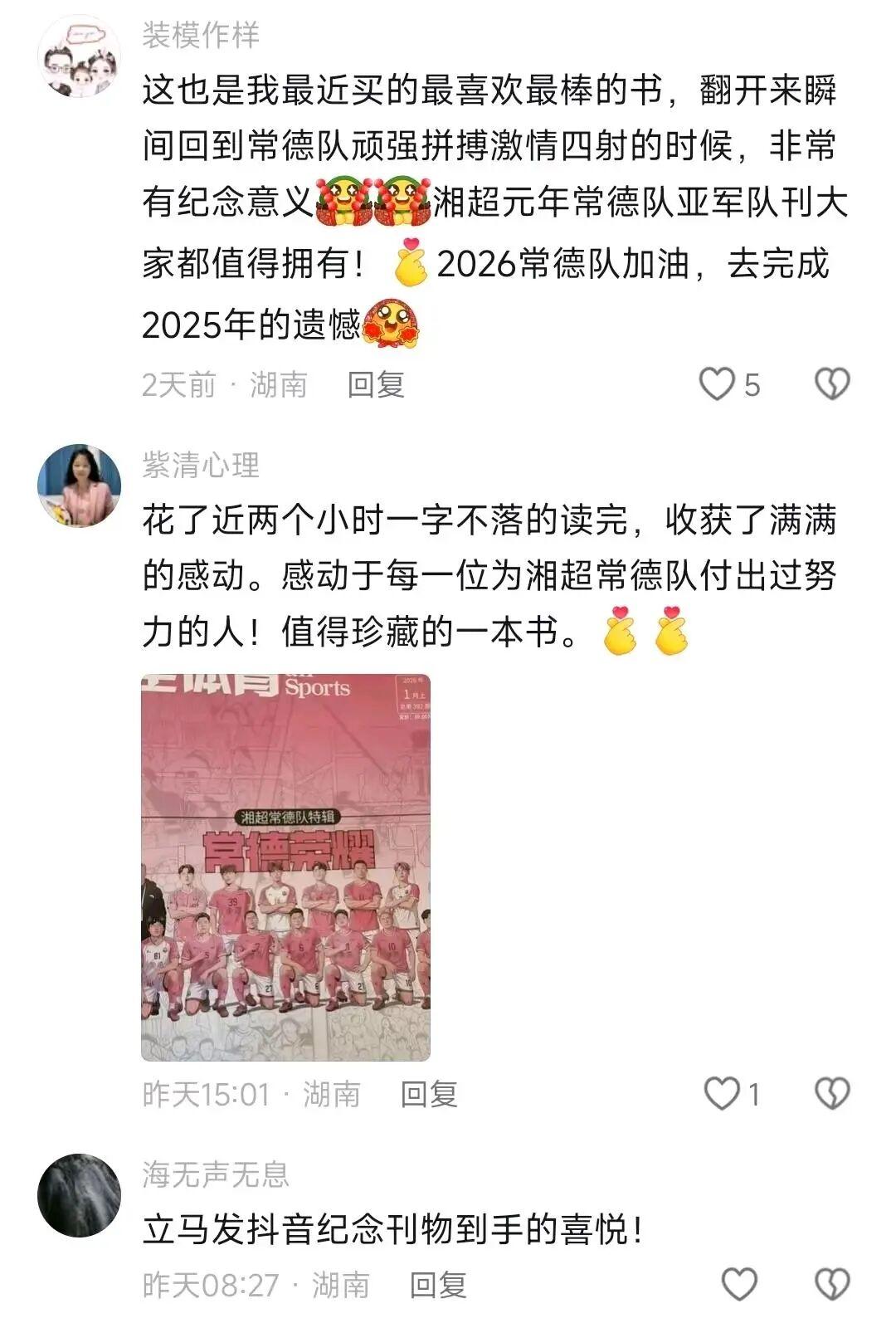 “人还没到家,队刊先到了,在外打拼的常德人,就用它弥补没能到现场看球的遗憾”