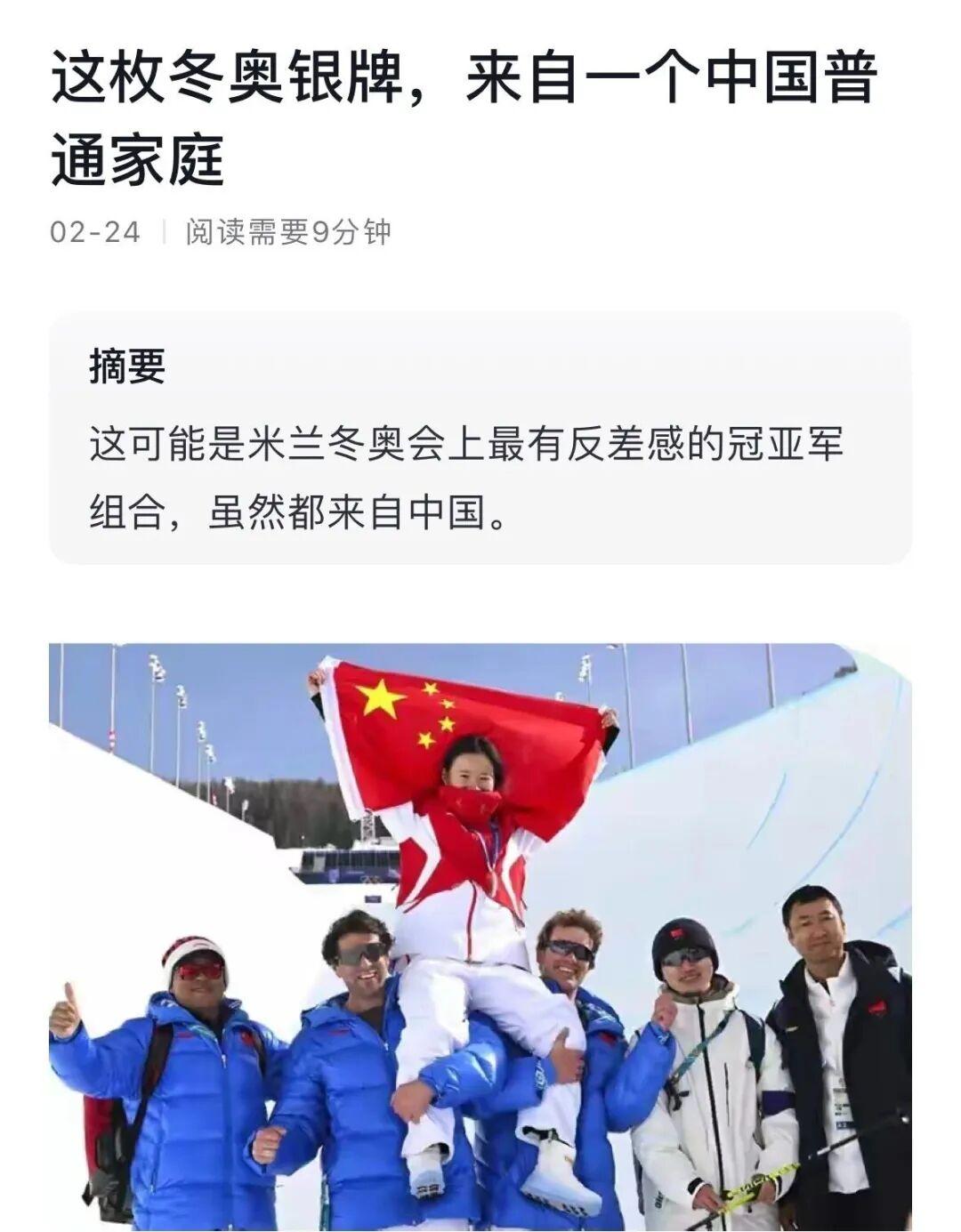 (文章《这枚冬奥银牌,来自一个中国普通家庭》)
