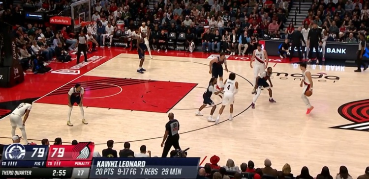 目前比赛进行到第三节,快船球星伦纳德凭借着一记自投自抢的翻身跳投将自己的本场得分达到20分,这也是他连续第57场拿到20+。